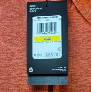 Stylish Under Armour polo. Heathered orange fabric. Classic collar and button placket. Iconic logo on chest.