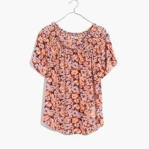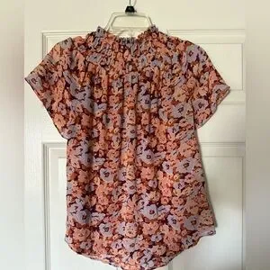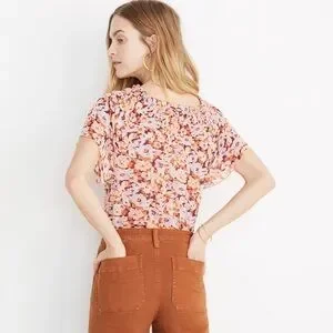 Madewell Smocked Mock Neck Top Floral Breeze size medium