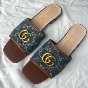 GUCCI Denim Blue Y2K Slides Sandlas Monogram Marmont Summer Sz. 39