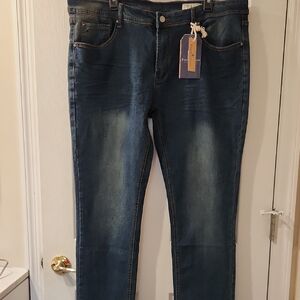 These blue stretch jeans offer a modern fit with natural fading and subtle distressing, creating a stylish and contemporary look. The jeans are designed with a sleek silhouette, perfect for adding a touch of sophistication to any outfit. Crafted for both comfort and style, they are an ideal choice for everyday wear.
