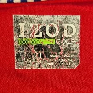 Izod Red Polo Mens Shirt with Striped Collar Short Sleeve