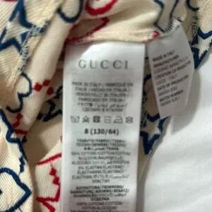 Chic Gucci polo with vibrant red and blue heart and star designs. Ideal for a standout style.