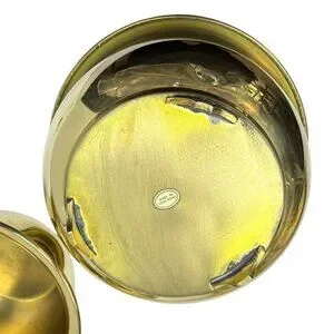 Their subtle vintage patina adds warmth and charm, while the elegant footed base gives it lift and sophistication. These have never been displayed but the large bowl does have a small area of significant tarnish (shown in the photos) which can be polished out with some elbow grease but I'd honestly just turn it to the back.