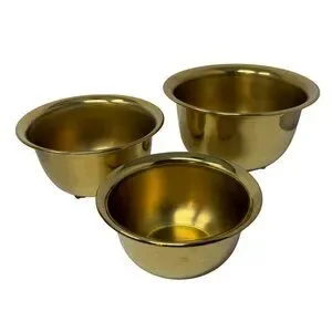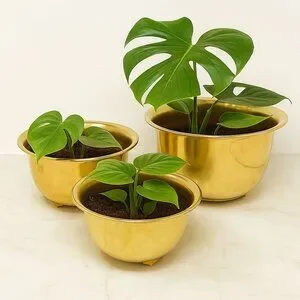 Elevate your home decor with this set of 3 vintage brass footed bowls. Made of solid brass with a smooth reflective finish, these versatile pieces can serve beautifully as planters, fruit bowls, centerpieces, or catchalls.