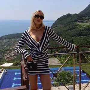 Elegant striped set. Perfect for beach outings. Stylish and comfortable.