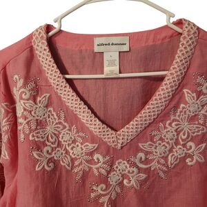 NWT Alfred Dunner Paradise Island pink embroidered top- L. U89