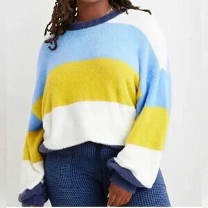 Aerie Campfire Chenille Stripe Sweater American Eagle Womens Medium Soft Blue