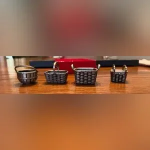 Lot of 4 Peterboro Basket Co. miniature pewter baskets