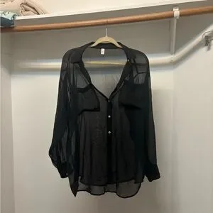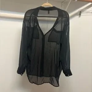 Elegant sheer black blouse with button-up design. Perfect for layering.