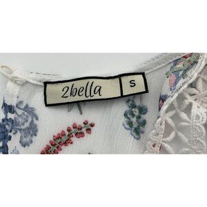 Boho Chic 2Bella Floral Print Sleeveless Dress With Lace Cutwork Trim Small