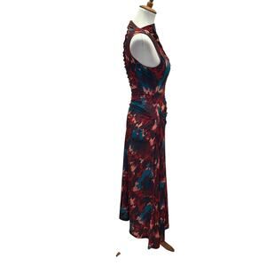 Red Abstract (100% Lyocel). Casual Dresses. Boat Neck. Sleeveless. Side zipper closure. Shoulder to hemline