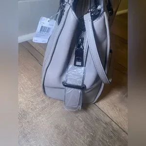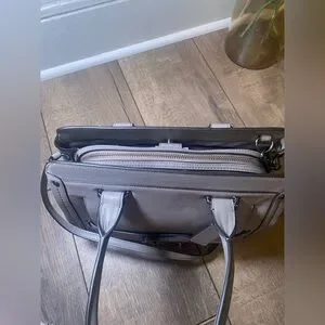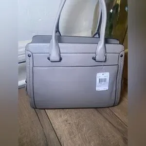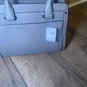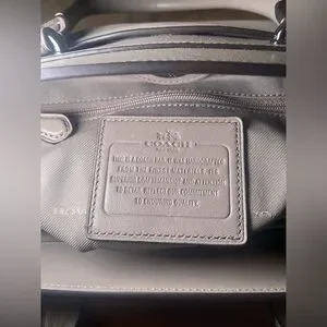 Elegant and versatile, this Coach handbag in gray leather is perfect for any occasion. Its sleek design and high-quality material make it a must-have accessory.