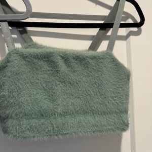 Lightly Worn | Fuzzy Pink & Green | XS Eyelash Knit Bandeau Tops | Gymshark