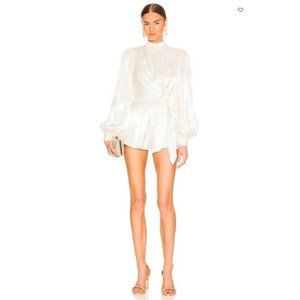 NWT Revolve Majorelle Women's Camryn Romper Sz S Floral Satin Jacquard Ivory