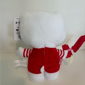 Adorable Hello Kitty plush wearing a red outfit. Features a cute bow and heart accessory.