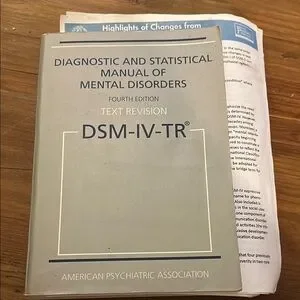 Diagnostic and Statistical Manual of Mental Disorders, Fourth Edition, Text Revision. Gray cover with white and blue text.