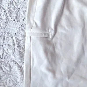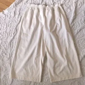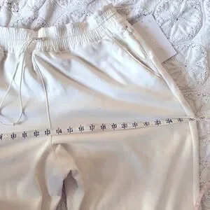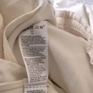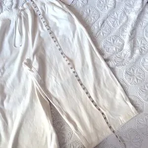 Elevate your style with these chic white wide-leg sweat pants. Adjustable waist and buttery soft on the inside. Size XL. I would describe the color as off white- not bright white but not a yellow cream. One very light mark on front of one leg- tried to show in last photo. Will likely wash out but I have not fully washed due to these being new with tags.