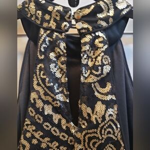 Alya Gold Sequined Halter Style Black Sleeveless Dress, Medium