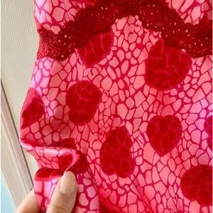Vintage red and pink heart patterned Jaclyn Smith intimates polyester slip dress in size S.