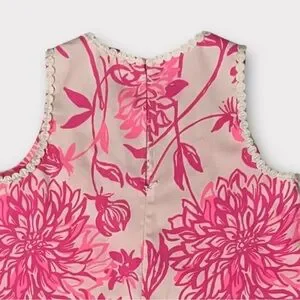 Lilly Pulitzer Sleeveless Shift Dress Size 0 Pink & White Floral Lace Back Hidden Zipper with Keyhole Opening