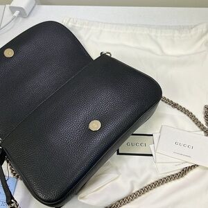 Serial is 536224.213317. Absolutely stunning authentic NWOT Gucci Soho Crossbody with black leather and tassel. Silver hardware. Flawless and brand new! 10” x 6.5” x 2”