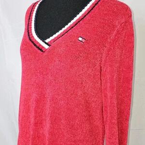Tommy Hilfiger Chenille Varsity Style Red Sweater