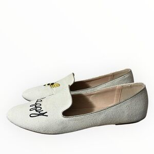 C Wonder Bee Happy Embroidered Loafer Flats Womens Size 9.5 Natural Linen Color