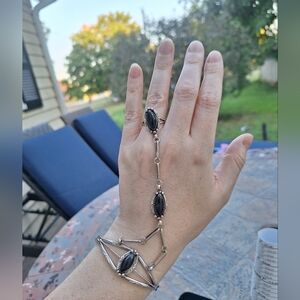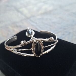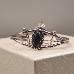 Sterling Size 7 Black Onyx Slave Bracelet Navajo Signed Jaqueline Silver