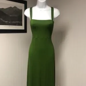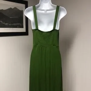 This stunning Banana Republic maxi dress in a rich green hue features a pleated design that adds a touch of elegance to any wedding or formal event. The sleeveless sundress boasts a square neckline, offering a modern and sophisticated look. Its flowing silhouette ensures comfort and style, making it a perfect choice for special occasions.
