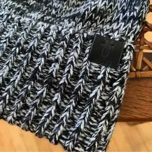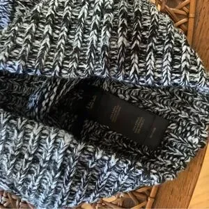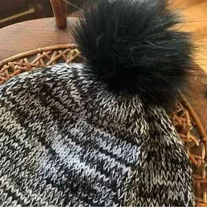 FRYE | NWT Black Charcoal White Marled Beanie with Pom Pom OS