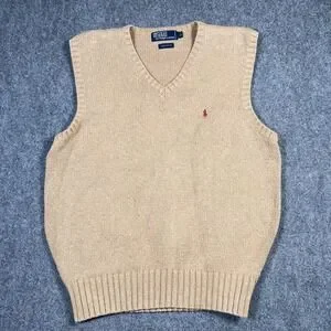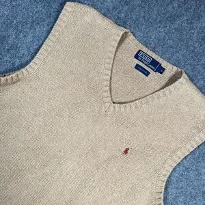 Polo Ralph Lauren Vest Men's Large Brown Red Pony Cotton Sweater