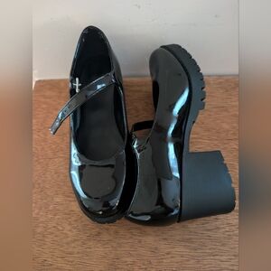 Step out in style with these chic black patent leather Mary Jane platform shoes. Perfect for any occasion, they offer both comfort and elegance.
