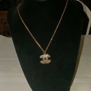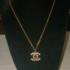 CHANEL Gold Interlocking CC Zipper Pull With Black Accent With Unbranded Chain.