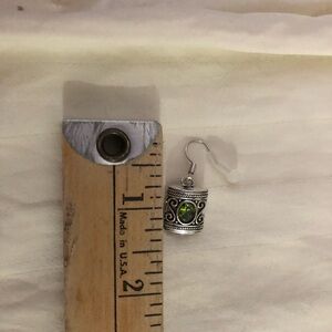 These elegant earrings feature a stunning green stone set in a beautifully crafted silver design. Perfect for adding a touch of sophistication to any outfit.