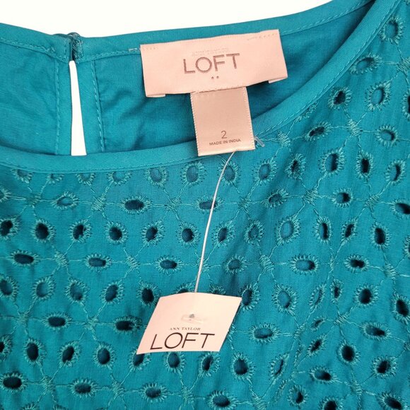 Ann Taylor Loft Dress Women's 2 Teal Green Eyelet Lace Sleeveless Summer Casual