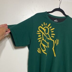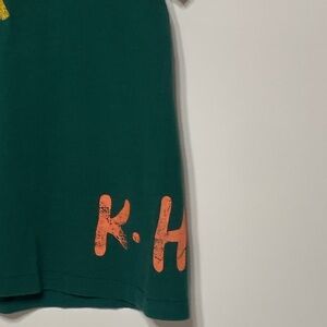 K.Haring name on side of t-shirt in a peach color