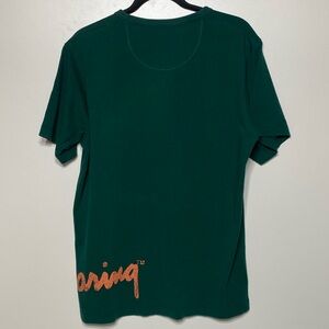T-Shirt is a dark green color