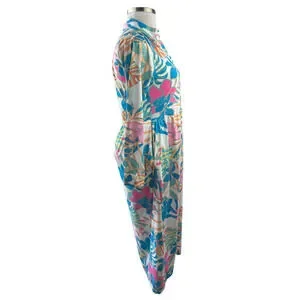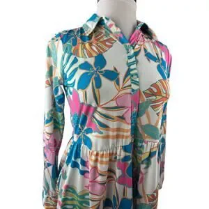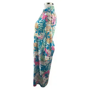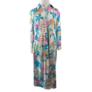 Tolani Long Sleeve Collared Maxi Dress W/ Pockets Tropical Print XS Oversized