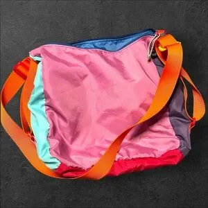 This vibrant Cotopaxi messenger bag from the Del Día collection is truly one of a kind, crafted with repurposed materials in bold, unique colors. Features 3 zipper pockets, 2 inner pockets, and a dedicated water bottle pocket. Lightweight and versatile with a bright orange adjustable strap. Perfect for travel, commuting, or everyday carry.