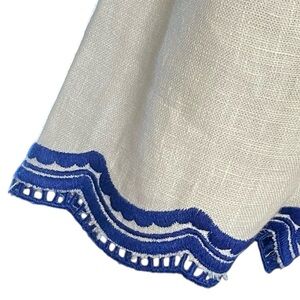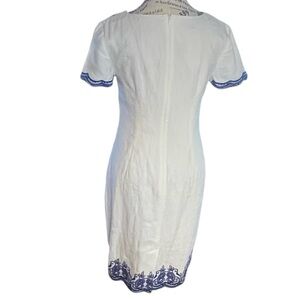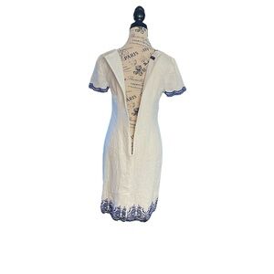 Talbots Cream Linen Sheath Dress with Round Neck and Beautiful Blue Embroidery
