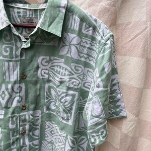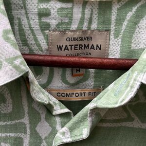 Quiksilver Mens Waterman Collection Shirt, Short Sleeve, White/Green, Size M