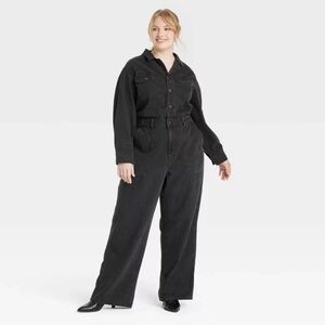 NWT Black Denim Utility Jumpsuit Size 26