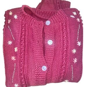 Dark pink floral Embroidered cottage core grandma core cardigan sweater large