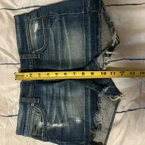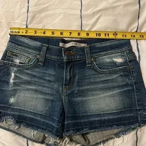 JOE’S Jeans Distressed Denim Low-rise Shorts size 24. Excellent condition. See pics for measurements. Zip and button closure.