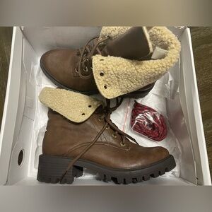 Bar III Lace Up Combat Ankle Boot SIZE 7 Cottage Moto Outdoor Faux Fur & Leather