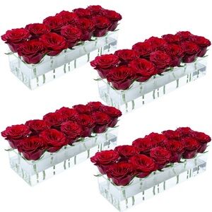 LOYWREE 4 Pack Long Rectangle Vase - Flower Vase Acrylic Rectangular Floral Centerpiece for Dining Table - Total 48 Inches Clear Vases for Home Decor Wedding(Flowers not Included)
