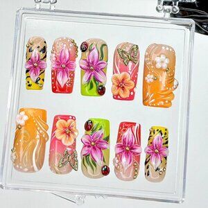 Tropical Bloom Press On Nails | Bright Summer Nail Art | Handmade Tropical Vibes Luxury Set