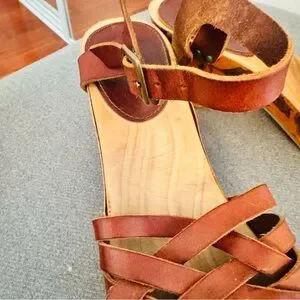 Isabel Marant Brown Leather Floral Heel Platform Sandals