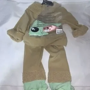 This is a Star Wars themed Halloween costume for infants aged 12-18 months, featuring Grogu, also known as "The Child" from the popular show The Mandalorian. The costume is designed to transform your little one into this beloved character for Halloween festivities.