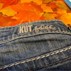 These are a cute pair of KUT from the Kloth capris, size 8. In excellent used condition. All threading is intact, and zipper and button are in working condition. See waist measurement in the photos.